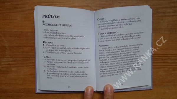 Knížka je vhodná lidi, kteří již mají knihu Průvodce zenovým tarotem a chtějí mít tuto Rančinu knížku s sebou v malém příručním vydání. V knize jsou popisy všech výkladů karet jako ve velkém Průvodci a hodně nových Osobních zkušeností, Doporučení, Poznámek a Témat k meditaci k jednotlivým kartám. Viz na obrázku popis karty Průlom - Poznámka, která je v této knižce nová.
