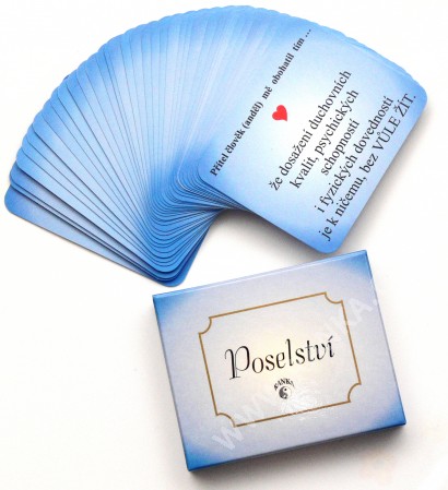 Poselství je soubor 36 karet, moudrostí, rad a vnitřních darů v hmotě žijících lidí a přesto andělských bytostí, kteří se rozhodli na sobě pracovat.