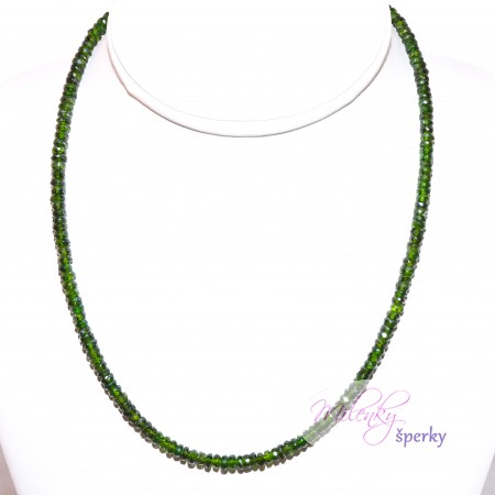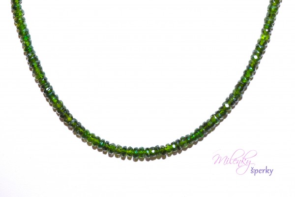 Drobné broušené čočky chromdiopsidu nejvyšší jakosti.