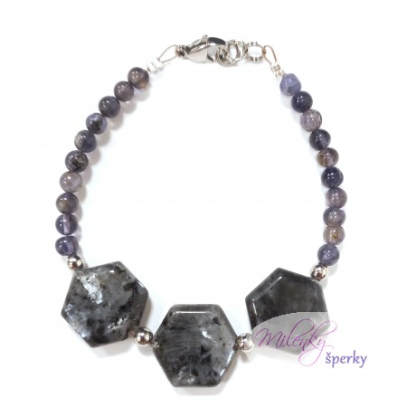 Cordierit - iolit. Hladké kuličky o průměru 0,3 cm.