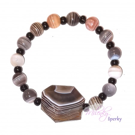 Achát ,,utišuje bouři,, zklidňuje psychiku. Doporučujeme lidem, kteří těžko zvládají stres a k celkovému