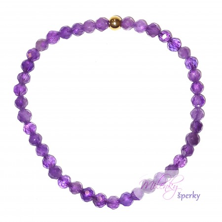 Broušený ametyst o průměru 0,3 cm, ocelový korálek.